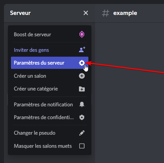 - Rendez-vous ensuite dans les Paramètres du serveur :