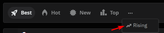 Vous pouvez également classer les publications en « Rising » pour être sûr de recolleter plus de karma. Les posts en Rising sont ceux qui ont accumulé le plus de karma depuis leur publication (récente) et qui vont évoluer rapidement. Être un des premiers à commenter vous offrira une place de choix, et donc plus de karma.