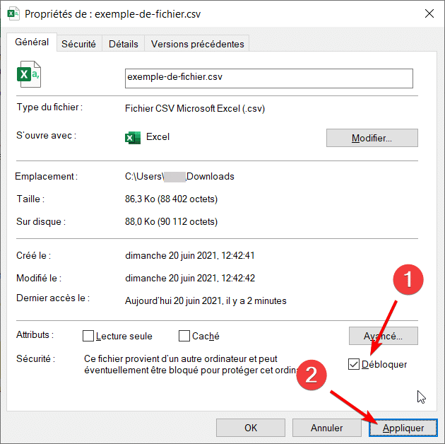 Si la ligne Sécurité n’apparait pas, c’est que le fichier n’est pas protégé par Windows, essayez une autre solution !